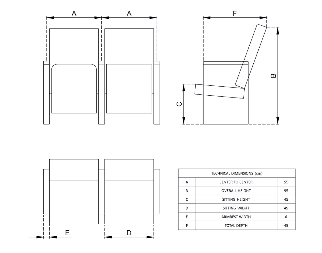 Koyu tonlu deri döşemesiyle resmi salonlara prestijli bir görünüm kazandırır. Yüksek sünger yoğunluğu sayesinde uzun oturumlarda konforu artırır. Metal ayaklı ve sabit montaj sistemine sahiptir.